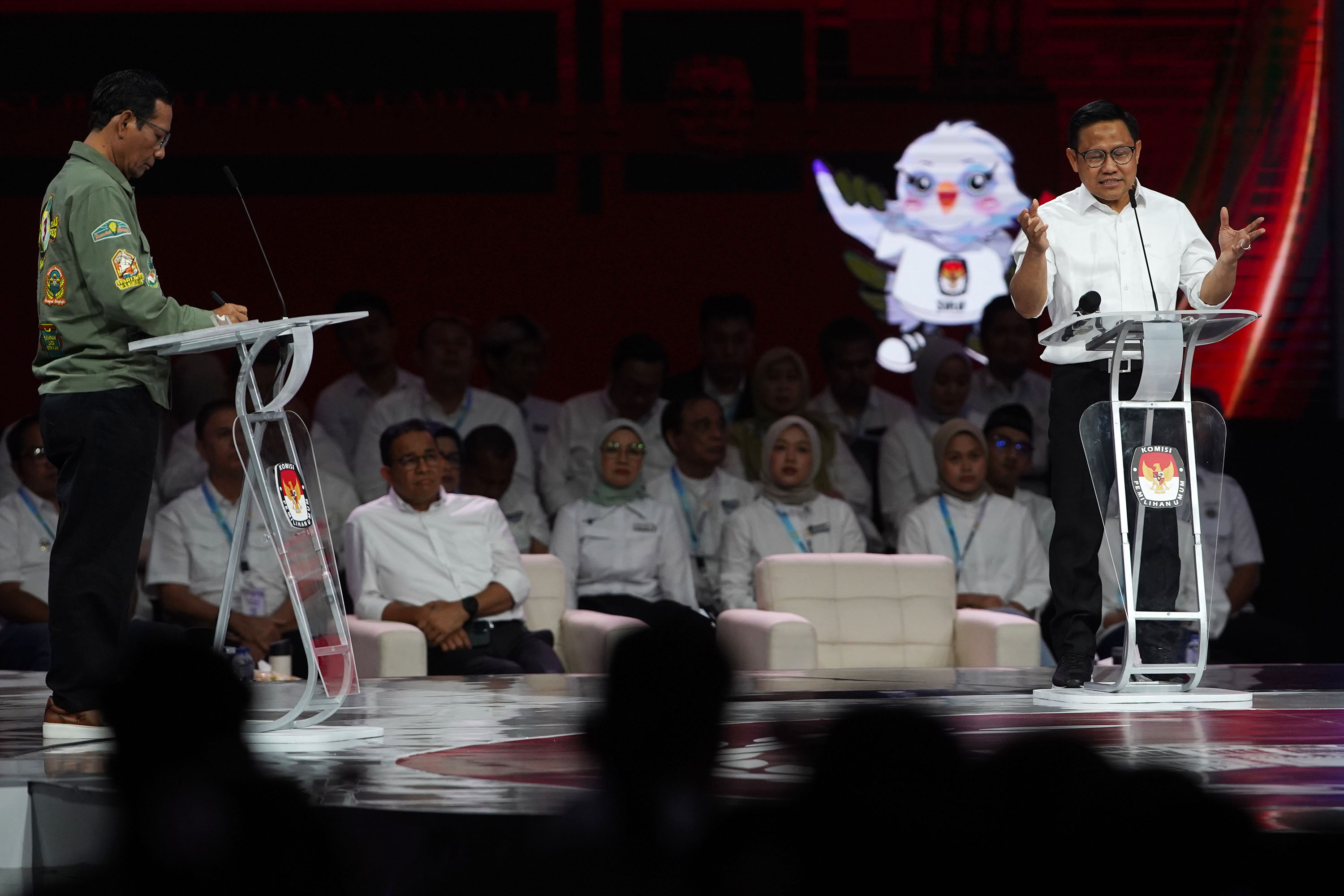 Cak Imin sepakat dengan Mahfud soal kerusakan hutan dalam debat keempat Pilpres 2024 yang dilaksanakan di JCC Center, Senayan Jakarta, Minggu (21/1).