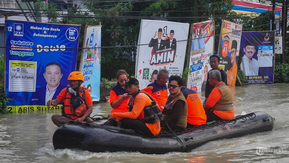 TRIBUNNEWS.COM- Tanggul yang jebol dan hujan deras di Demak telah menyebabkan banyak TPS di Demak terendam banjir. Akibatnya, area yang menjadi tempat untuk ratusan TPS di Demak terendam banjir.