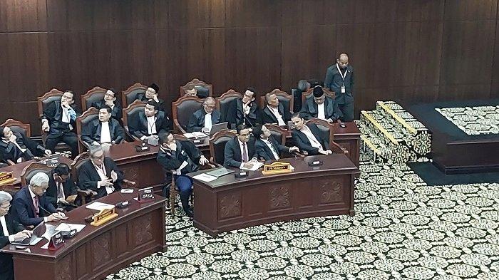 Momen ini berlangsung dalam sidang pembacaan putusan MK terkait perselisihan hasil pemilihan umum (PHPU), di gedung MK, Jakarta, pada Senin (22/4/2024).