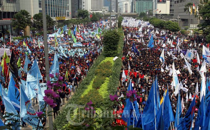 Para buruh yang melakukan aksi unjuk rasa di kawasan HI hingga Istana Negara, Rabu (1/5/2013) membuat keindahan kota