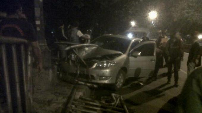 "Iya sepertinya mabuk, dari lampu merah gaspol 100km/jam kira-kira lalu nabrak pagar pembatas di depan carefour," tulis Aldias, Kamis(1/5/2014) pagi.