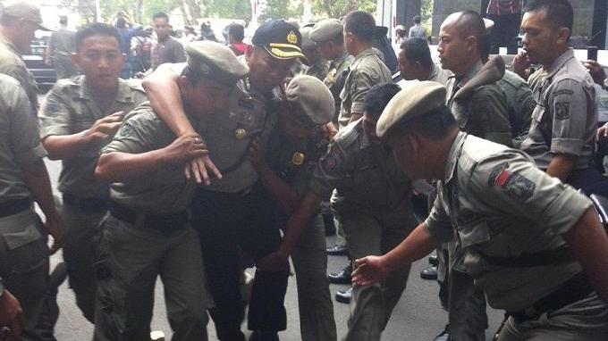 Sementara itu Kapolsektro Gambir, AKBP Putu Putra, yang juga kena lemparan batu terlihat sempoyongan berjalan. Dia harus dipapah oleh Satpol PP dan beberapa polisi untuk mendapatkan perawatan.