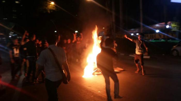 "Massa berorasi dan membakar ban bekas serta memblokade Jl Cikini Raya depan PTUN / antara SPBU Cikini dan KFC , situasi jalan Cikini Raya saat ini macet Total, dan sedang di cairkan," tegas Rikwanto.