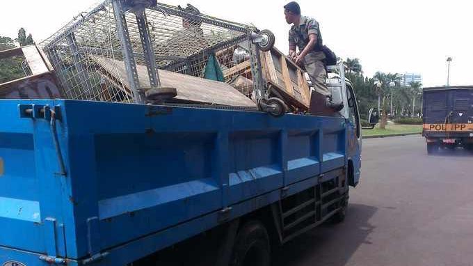 Truk Satpol PP Dipenuhi Barang Dagangan PKL Monas