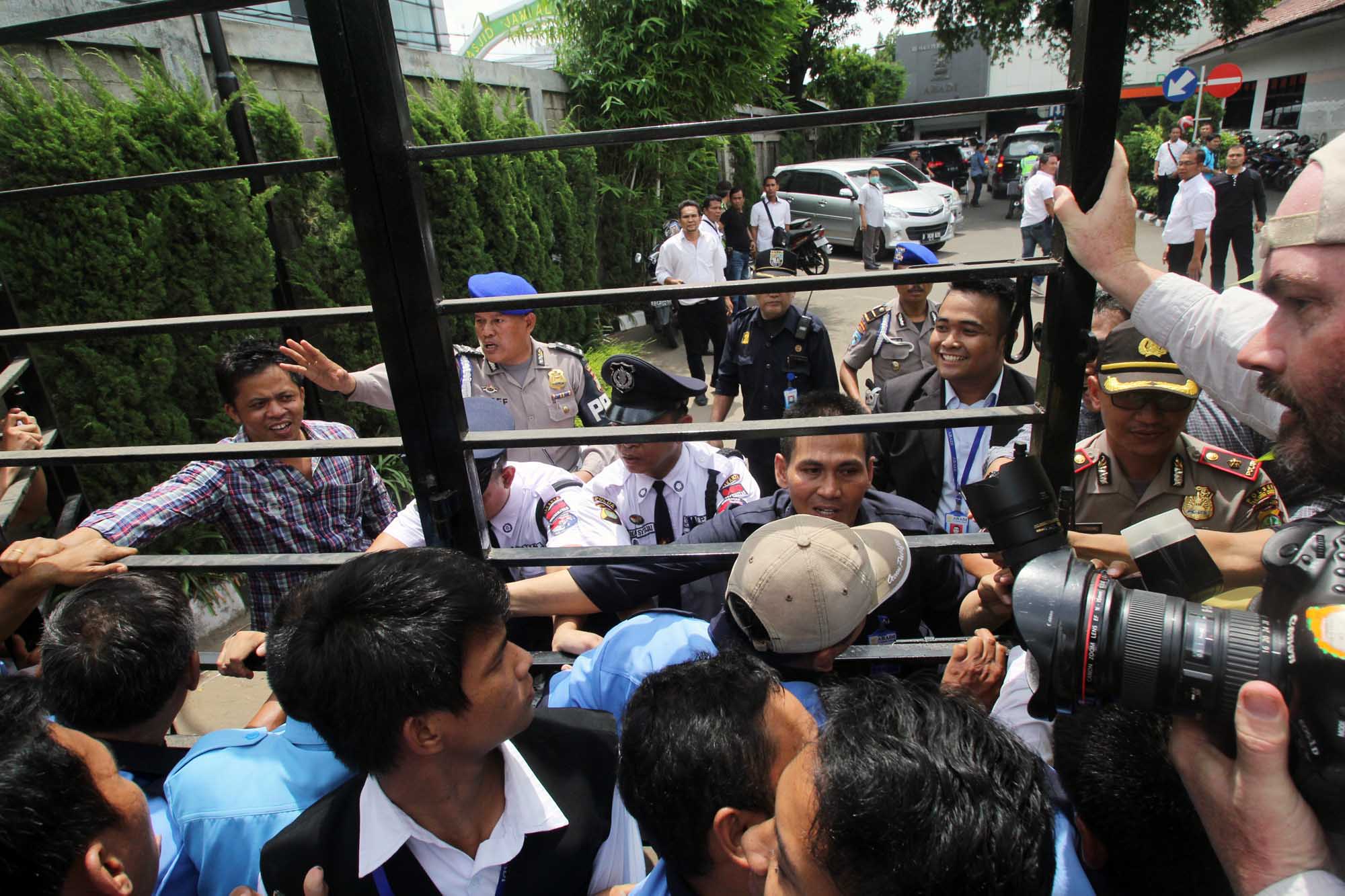 Warga sekitar dan awak media menunggu perkembangan informasi mengenai dua jenazah terpidana mati, Myuran Sukumaran dan Andrew Chan.