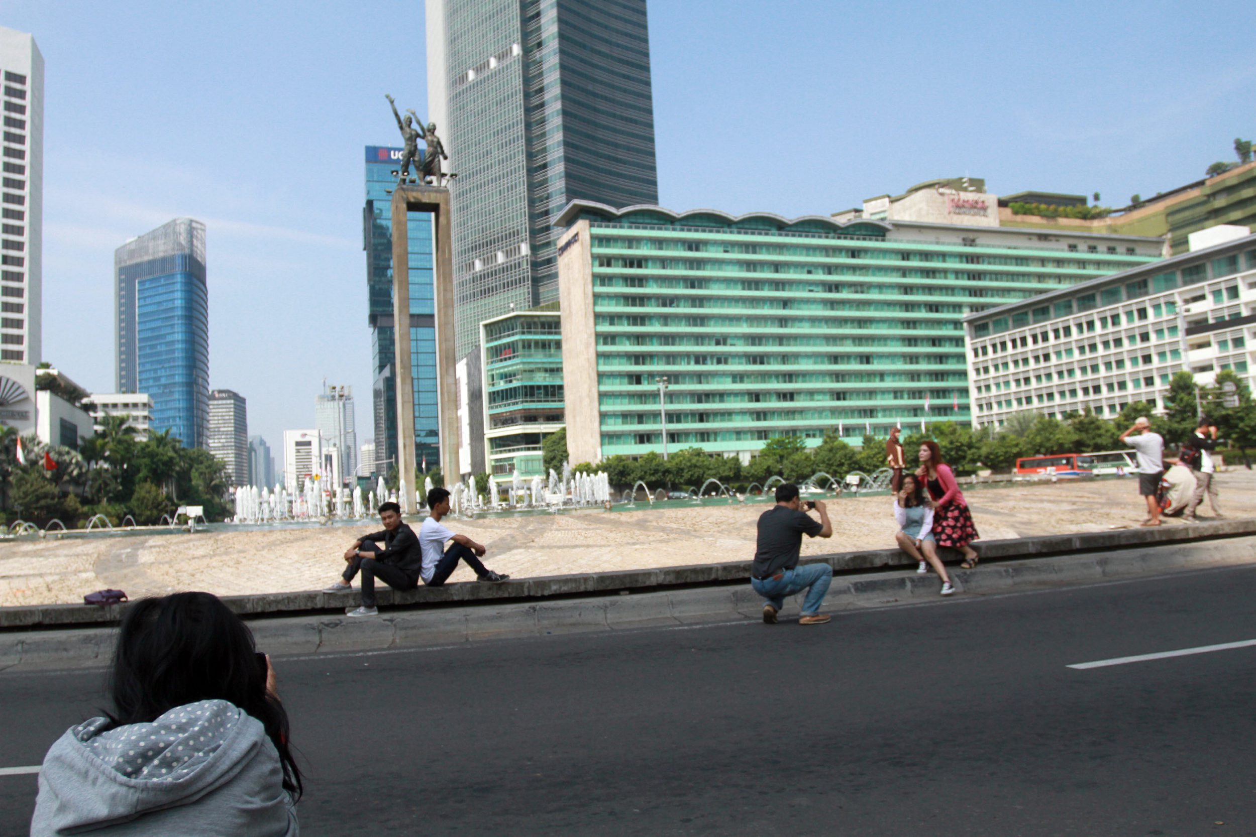 Setelah melewati bundaran Senayan, di Jalan Sudirman lalu lintas tampak lancar dan jumlah pengguna jalan sedikit.