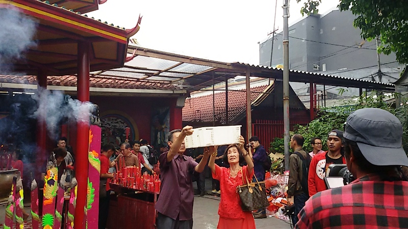 Di vihara tertua di Jakarta ini, tampak sejumlah warga datang untuk berdoa sambil membakar hiyo. Setelah membakar hiyo, tampak pula beberapa pengunjung melepaskan burung di halaman wihara.
