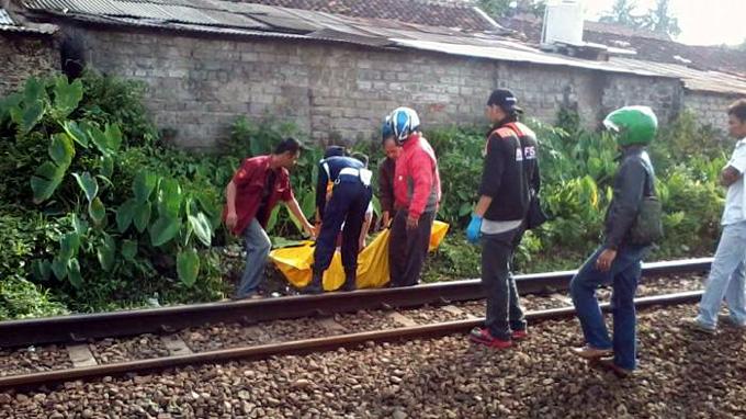 Tiba-tiba, kereta commuter line Jabodetabek jurusan Bogor-Jakarta melintas dan langsung menabrak korban.