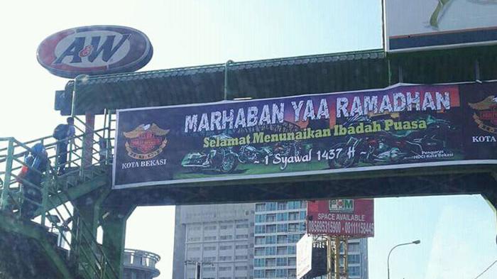 "Spanduk selamat Ramadan tsb dibuat oleh HDCI (Harley Davidson Club Indonesia). Bukan Pemda/Pemkot Bekasi," kicau pengguna akun @alibasuki.