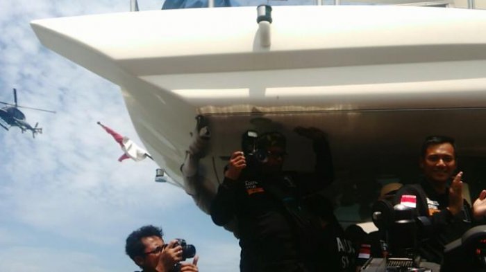 Sebab, seseorang di rombongan kapal yang ditumpangi Agus nampak memberi isyarat agar helikopter itu terbang menjauh.