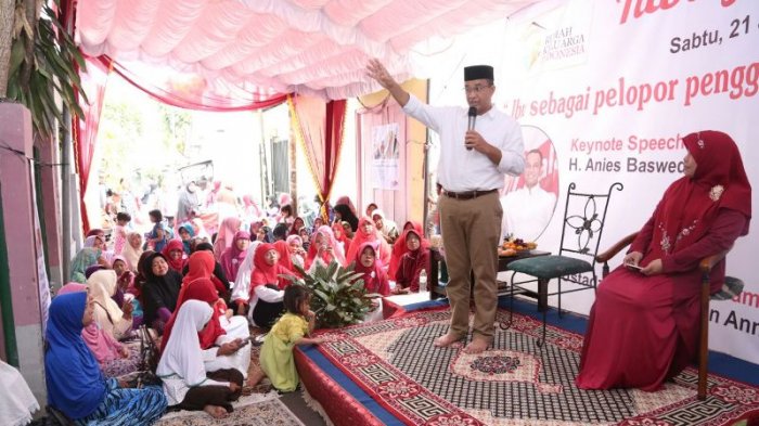 Di hadapan massa yang mayoritas ibu-ibu tersebut, Anies mengaku bahwa ia sendiri masih mencicil rumah.