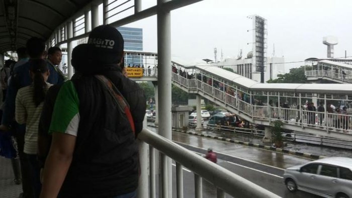 * Koridor 4 (Pulogadung-Dukuh Atas) tertahan karena ada rendaman air di jalan, tepatnya di perempatan Arion Mall Jalan Pemuda