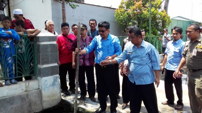 Politikus PDI Perjuangan itu pun sempat mengecek ketinggian air di saluran yang berada di wilayah tersebut.