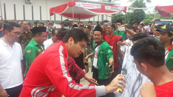 "Kami bekerja sama untuk Pancasila. Dengan Walikota Bogor Arya Bima dari PAN, kami kerja sama. Pak Ridwan Kamil tidak berpartai, kami dukung itu. Apapun partainya, anak muda Jawa Barat dan Indonesia mendukung Pancasila. Kalau ada yang mengganggu Pancasila, berhadapan dengan kami semua," katanya.
