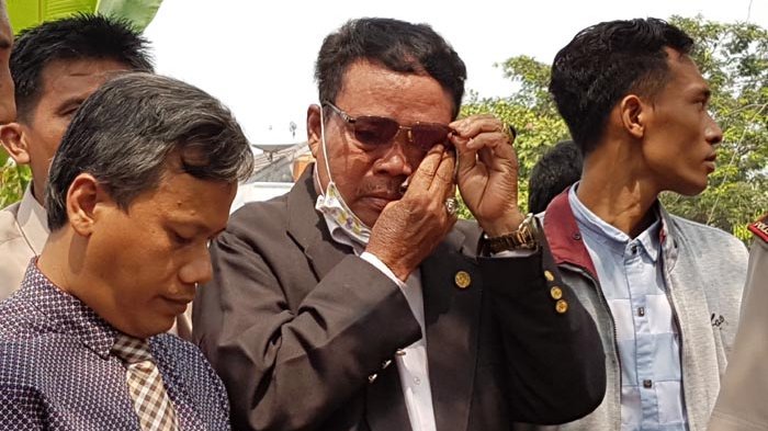 TRIBUNNEWS.COM, BEKASI - Asmawi (56) tidak mampu membendung kesedihan. Air matanya terurai dan selalu dibasuh memakai saputangan.