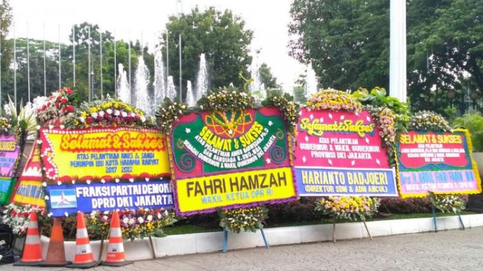 Ini Identitas Mereka yang Mengirim Karangan Bunga untuk Anies-Sandi di Balai Kota DKI