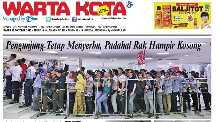 Hingga sore hari, meski sudah banyak barang-barang yang ludes terjual, masih banyak masyarakat yang rela mengantre di depan pintu masuk pusat perbelanjaan.