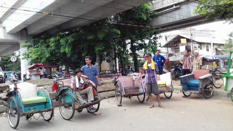 "La wong kami sudah 20 tahun lebih narik becak, kok masih diajari?" keluh Darto di lokasi, Kamis (1/2/2018).