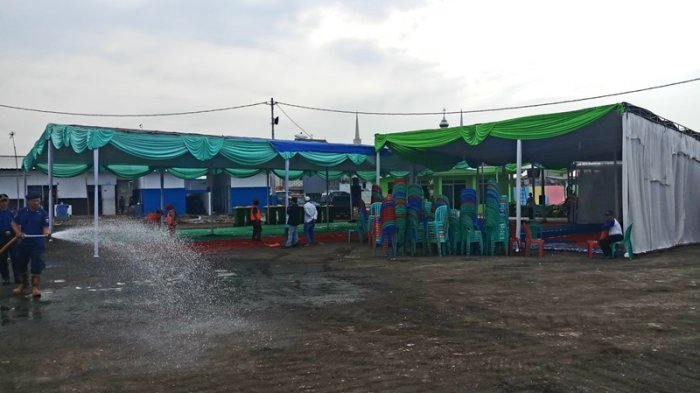 Petugas juga telah mendirikan tiga buah tenda.