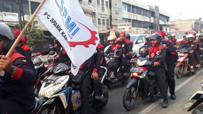 TRIBUNNEWS.COM, BEKASI - Ratusan buruh dari Federasi Serikat Pekerja Metal Indonesia (FSPMI) dan Konfederasi Serikat Pekerja Indonesia (KSPI) konvoi dengan sepeda motor untuk bertolak ke Jakarta.