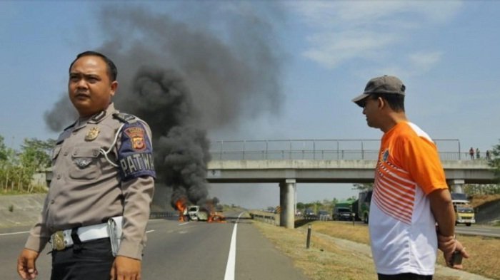 Tidak lama kemudian ambulans dari pengelola tol tiba bersama dengan polisi dan pemadam kebakaran.