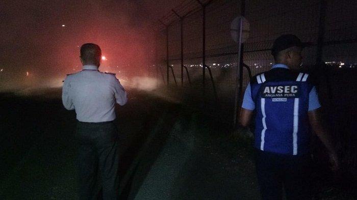 Api baru padam sekitar 30 menit lamanya setelah petugas membawa 1 unit mobil pemadam kebakaran PT Angkasa Pura II ke lokasi kejadian.