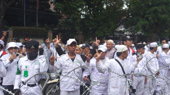 Diketahui, massa FUI melakukan aksi di depan Gedung KPU, Jl Imam Bonjol, Menteng, Jakarta Pusat, Jumat (1/3/2019).