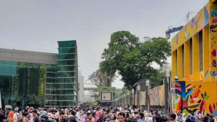 TRIBUNNEWS.COM, JAKARTA- Ribuan warga Jakarta padati Planetarium, Taman Marzuki untuk meyaksikan Gerhana Matahari, Kamis (26/11/2019). Meski cuaca sempat mendung dan tertutup awan, pengunjung tampak tetap antusias melihat melihat fenomena gerhana matahari cincin kali ini.
