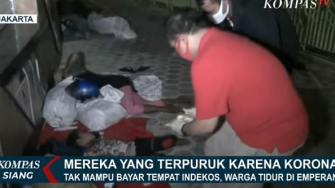 Sejumlah warga bahkan terpaksa tinggal dan tidur di emperan kawasan Pasar Tanah Abang karena tidak lagi memiliki penghasilan untuk membayar sewa kontrakan atau indekost.
