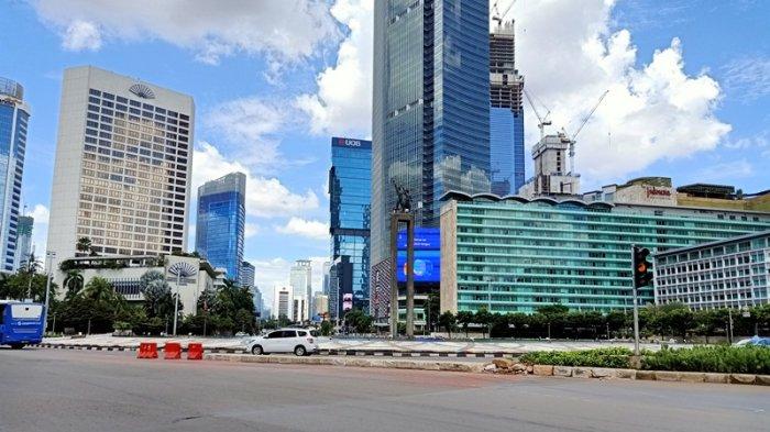 TRIBUNNEWS.COM, JAKARTA - Arus lalu lintas sepanjang Jalan MH Thamrin, Sudirman hingga ke arah Monumen Nasional (Monas), Jakarta Pusat, terpantau sepi hingga H+1 hari raya idul Fitri 1441 H.