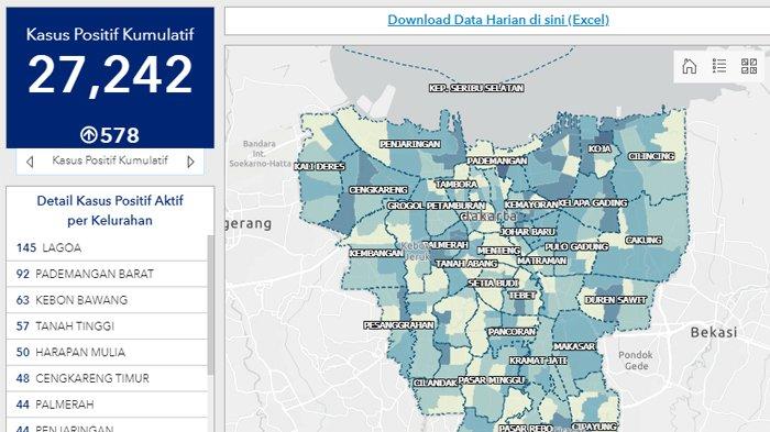 TRIBUNNEWS.COM - Pemerintah Provinsi DKI Jakarta melalui website resmi penanganan Covid-19, corona.jakarta.go.id, memberikan informasi update kasus corona.