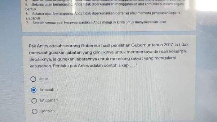 Siswa diminta menjawab sifat apa yang ditunjukkan oleh Anies itu.