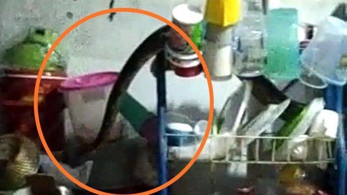 Diduga, ular tersebut masuk melalui lubang selokan yang mengarah ke dapur rumah Karti.