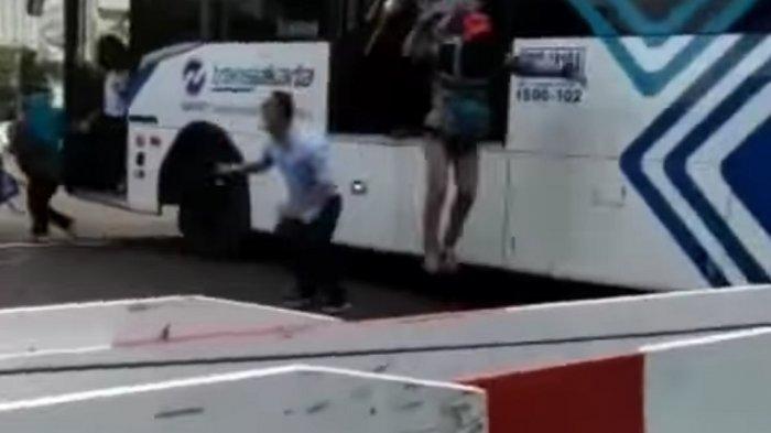 Dalam video itu, terlihat bus transjakarta melintas di perlintasan rel kereta api kawasan Halimun, Menteng, Jakarta Pusat.