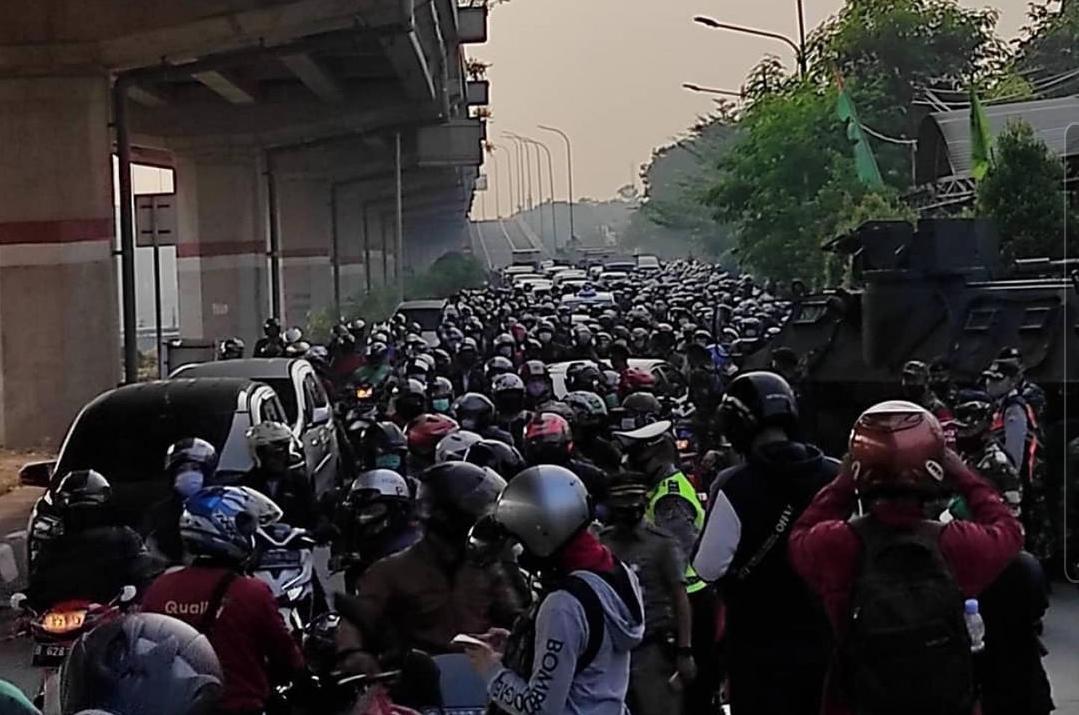 Ribuan pengendara motor dan mobil yang umumnya akan berangkat bekerja tersendat.