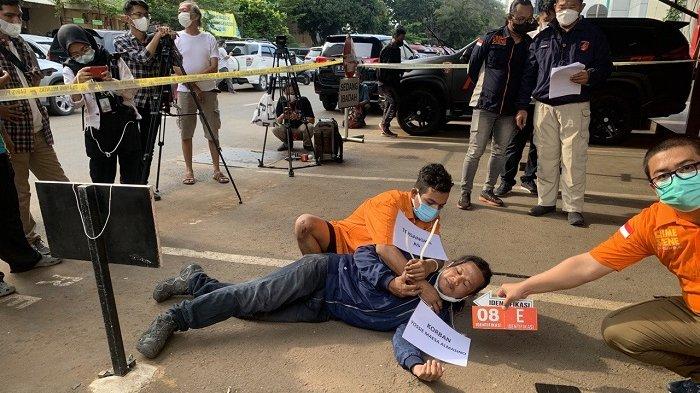 TRIBUNNEWS.COM, JAKARTA - Subdit Resmob Ditreskrimum Polda Metro Jaya menggelar prarekonstruksi pembunuhan sadis seorang pria tunawicara YM (25) yang tewas di Serdang, Kemayoran, Jakarta Pusat, Kamis (9/12/2021).