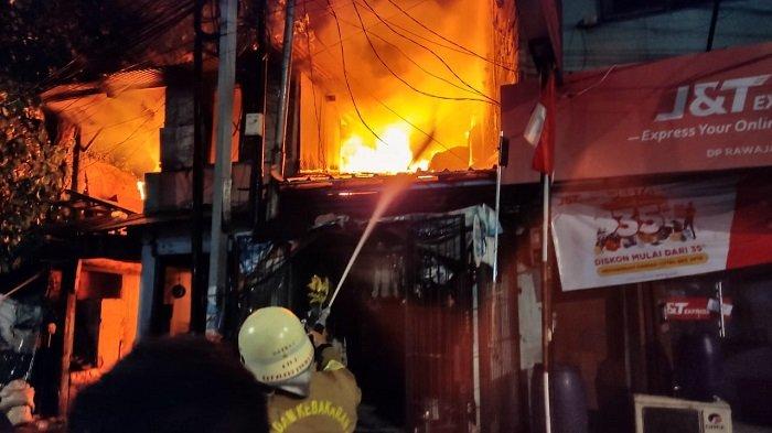 TRIBUNNEWS.COM, JAKARTA - Kebakaran menghanguskan sebuah lapak gudang kayu di Jalan Kalibata Raya, Rawajati, Pancoran, Jakarta Selatan, Sabtu (22/1/2022) pukul 20.35 WIB.
