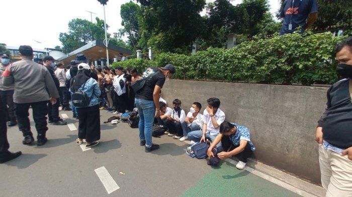 TRIBUNNEWS.COM, JAKARTA - Aparat kepolisian mengamankan sejumlah remaja yang diduga pelajar SMA/SMK yang hendak mengikuti aksi demonstrasi di depan Gedung DPR/MPR RI, Jakarta Pusat, Senin (11/4/2022).