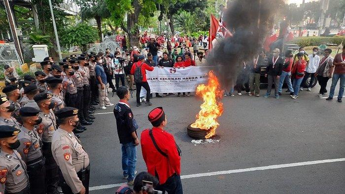 Unjuk rasa menolak kenaikan harga Bahan Bakar Minyak (BBM) ini diwarnai aksi bakar ban.