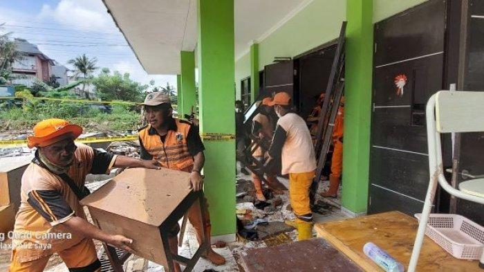 Sekolah yang berada di Cilandak, Jakarta Selatan itu diduga roboh akibat tak kuat menahan luapan air Kali Krukut yang berada di sekitar lokasi kejadian.