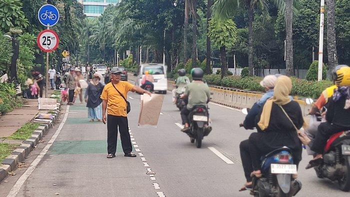 Manulang yang rambut dan kumisnya sudah memutih itu dengan semangatnya menyodorkan tikar yang dibawanya kepada pengguna jalan mobil maupun motor.