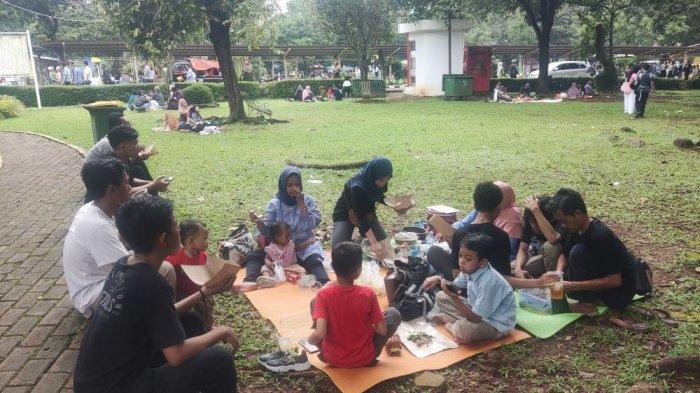 Suasana Ragunan di Hari ke-2 Lebaran, Banyak Warga Lesehan Santap Makanan