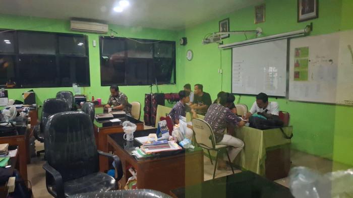 Sejumlah guru dan siswa laki-laki tampak menjalani berita acara pemeriksaan (BAP) dengan beberapa pihak kepolisian.