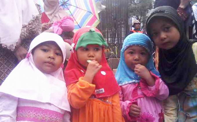 LULU sapaan akrabnya. Saat ditemui, gadis kecil itu mengenakan kerudung berwarna hijau tua dipadu dress berwarna hijau muda dan biru langit. Wajahnya terlihat malu-malu saat ditanya kenapa ikut aksi unjuk rasa, Jumat (22/11/2013) siang. Rona memerah dari pipi di kulit wajah yang putih serta bola mata hitam pekat yang memicing menandakan itu.