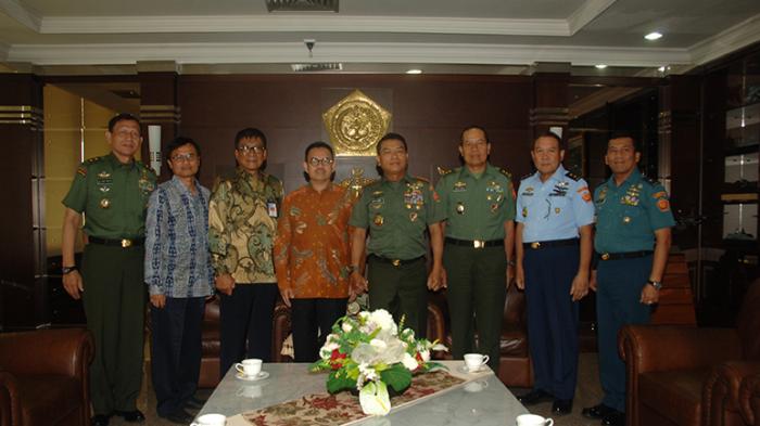 TRIBUNNEWS.COM, JAKARTA – Panglima TNI Jenderal Moeldoko menerima Audiensi Direktur Utama (Dirut) PT Pindad, Sudirman Said beserta dua staf di Ruang Tamu Panglima TNI Mabes TNI Cilangkap, Jakarta, Kamis (4/9/2014).