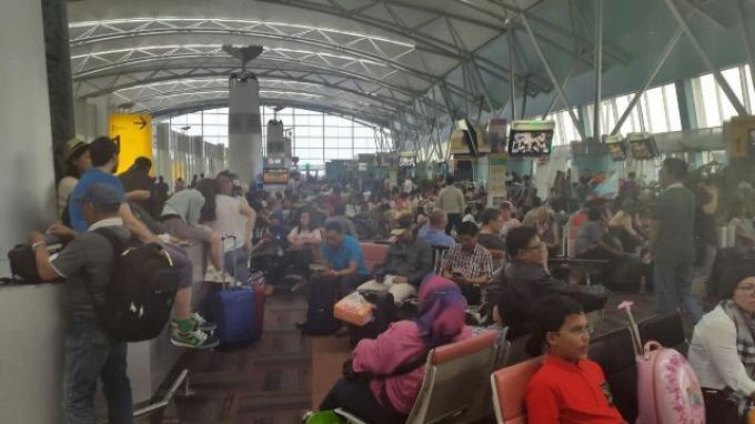 Layanan penerbangan di Terminal 3 Bandara Soekarno Hatta lumpuh, Jumat (20/2/2015)