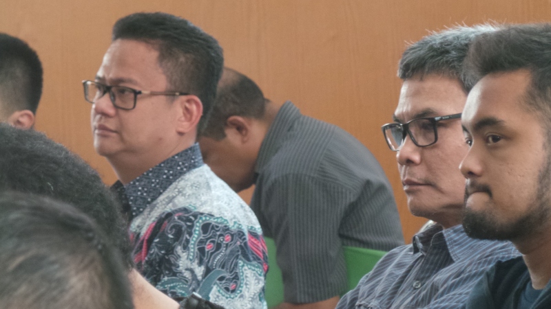 Sekitar pukul 13.20 WIB, Johan datang menggunakan kemeja biru bergaris-garis mengambill posisi duduk sisi kanan ruangan sidang utama, tempat diadakan sidang praperadilan.