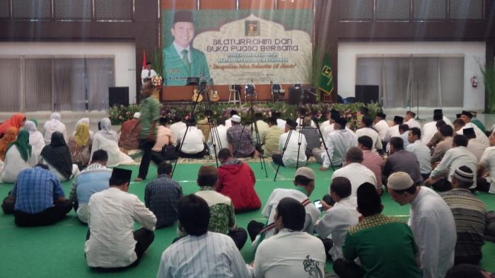 Pantauan Tribunnews, buka bersama dihadiri ratusan warga PPP baik pria maupun wanita. Acara digelar cukup sederhana. Usai salat berjamaah mereka yang hadir menyantap hidangan yang disediakan di sebelah kiri dan kanan ruangan sambil diiringi qasidahan.