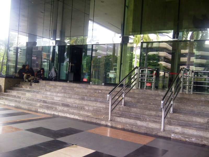 Hanya ada belasan anggota satuan pengamanan yang berjaga mulai pintu depan hingga meja penerima tamu.