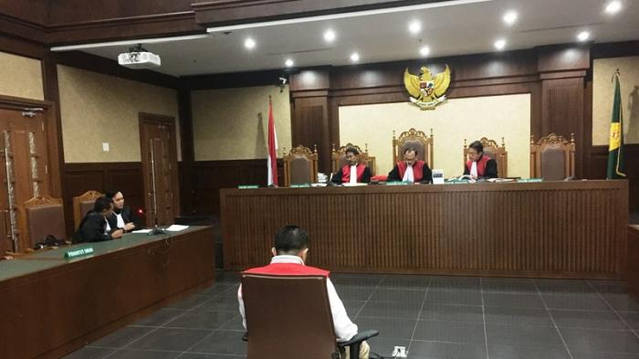 Dalam sidang yang dimulai sekitar pukul 15.00 WIB, Ivan Haz datang mengenakan kemeja putih dengan rompi berwarna merah bertuliskan tahanan.